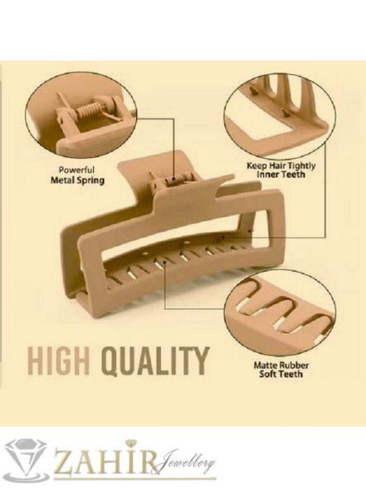 Аксесоари за коса - Светлокафява силиконова щипка с размери 10,5 на 5 см, материал - матов силикон, стабилно захващане - ST1227