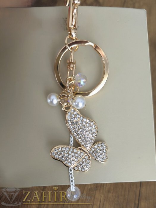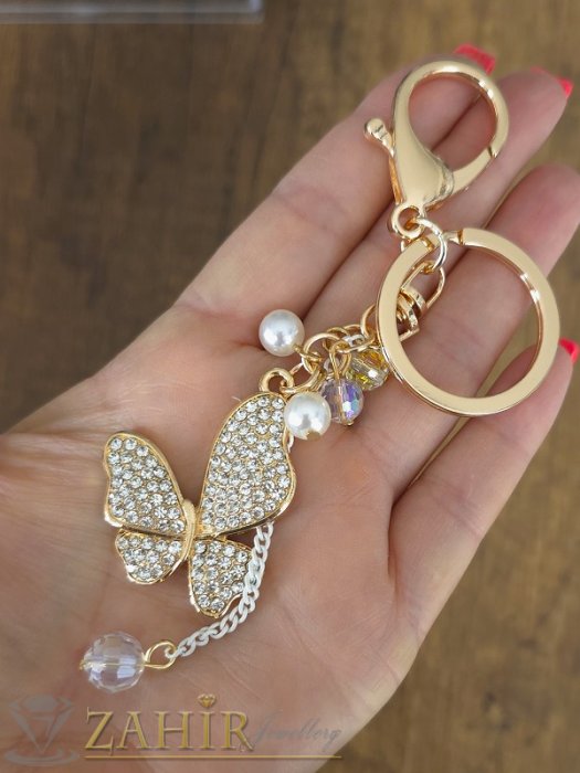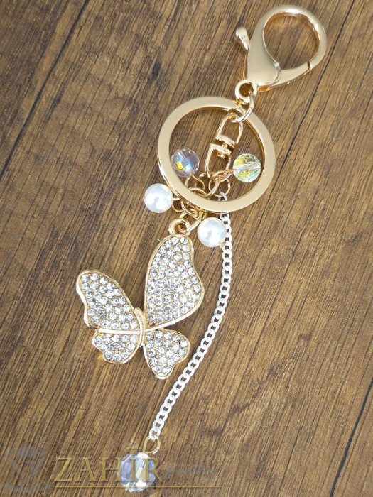 Луксозен ключодържател със златен или сребърен цвят и приятно проблясващи камъчета.