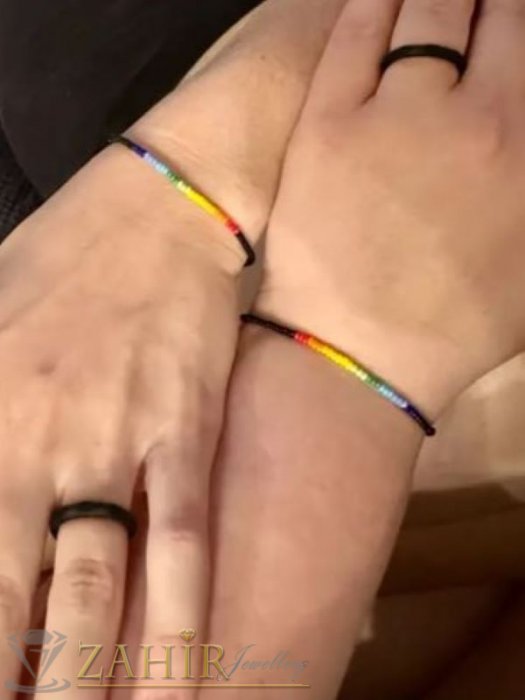 Комплектът съчетава минималистичен стил с дълбоко символично значение. Фините мъниста в цветовете на дъгата, подредени върху черна еластична основа, излъчват дискретна елегантност и подкрепа за свободата да бъдеш себе си.
