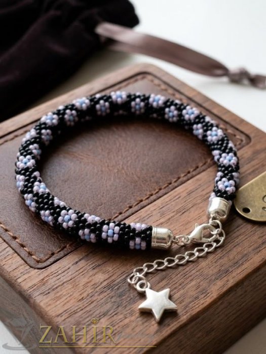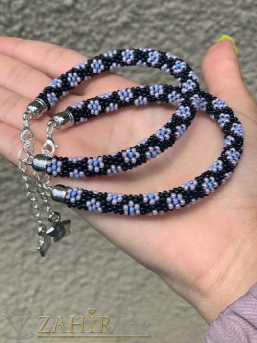 АРТ БИЖУТА С МЪНИСТА - Хендмейд плетена гривна с цветя от оригинални чешки стъклени мъниста със закопчалка и удължител - N1023