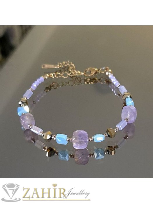 Гривната е изцяло ръчна изработка от естестени камъни и стоманени елементи . Всяка гривна е уникална и може да бъде намерена и закупена само онлайн от магазин Захир на намалена промо цена