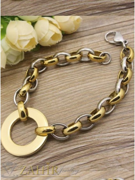 Класическа позлатена стоманена гривна изящна плетка, 3 размера, широка 0,9 см с позлатен ринг