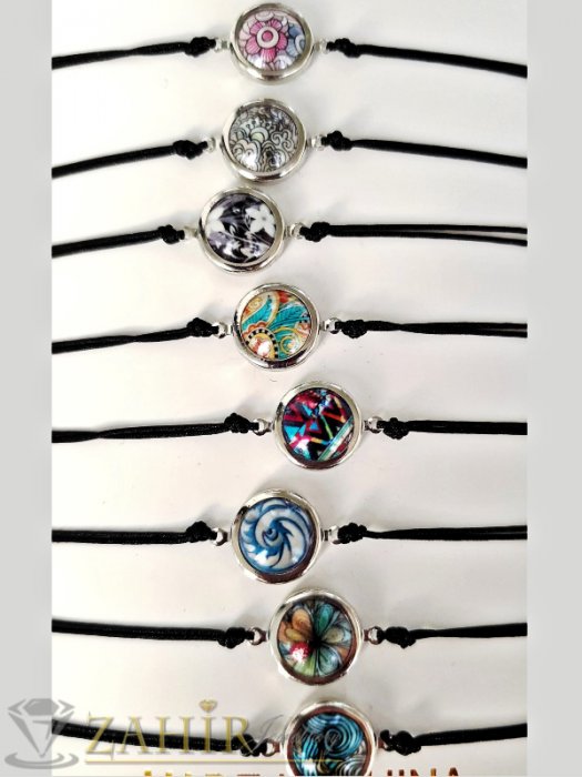 Рисуван кераимчен елемент в 8 варианта на регулираща се гривна от черна корда