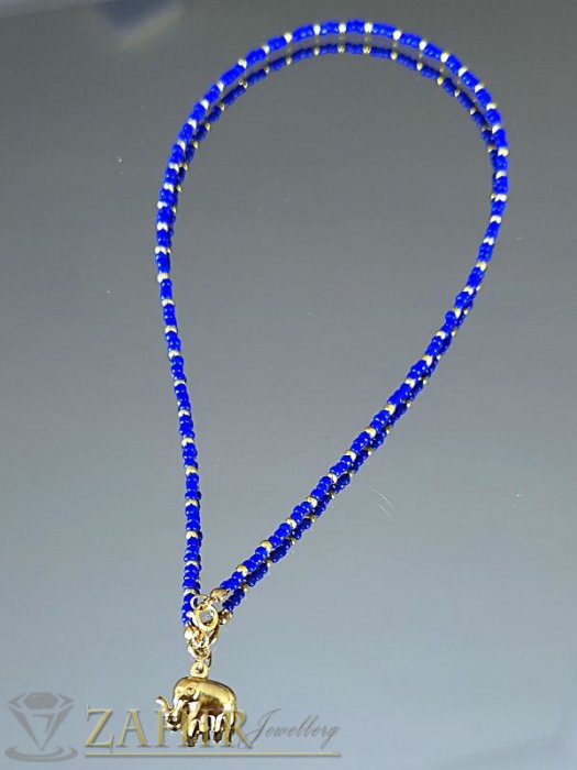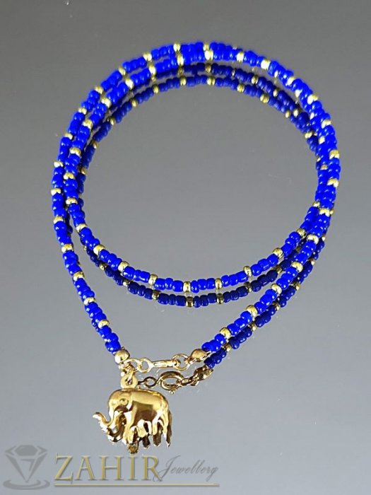 Дизайн: Фин низ от наситено сини мъниста, акцентирани със златисти детайли.