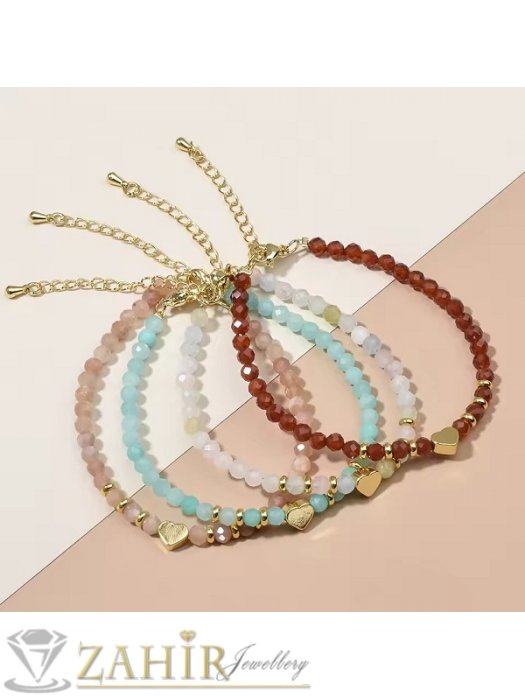 ДАМСКИ БИЖУТА - Избери своята гривна от над 30 модела гривни с естествени камъни 3 мм, стоманено сърце, рингове, закопчалка и удължител - GA3105