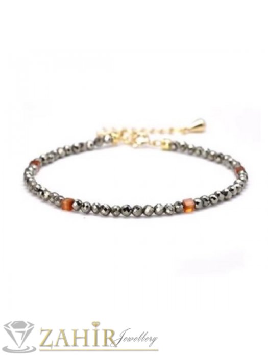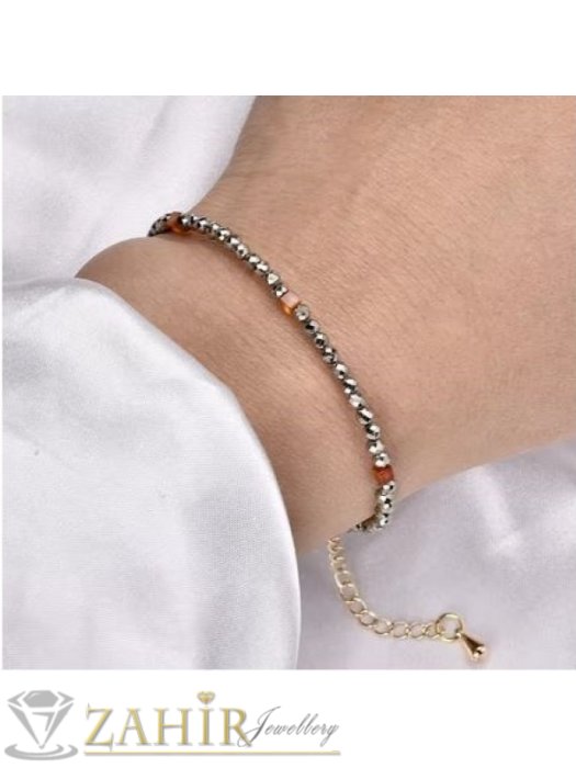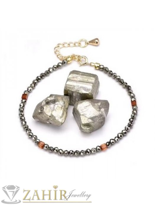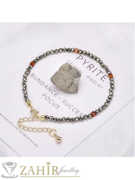 ДАМСКИ БИЖУТА - Мега яка гривна за ръка или глезен от естествен пирит3 мм топче и стоманени елементи, закопчалка и удължител - GA3064