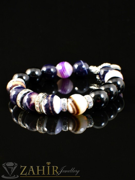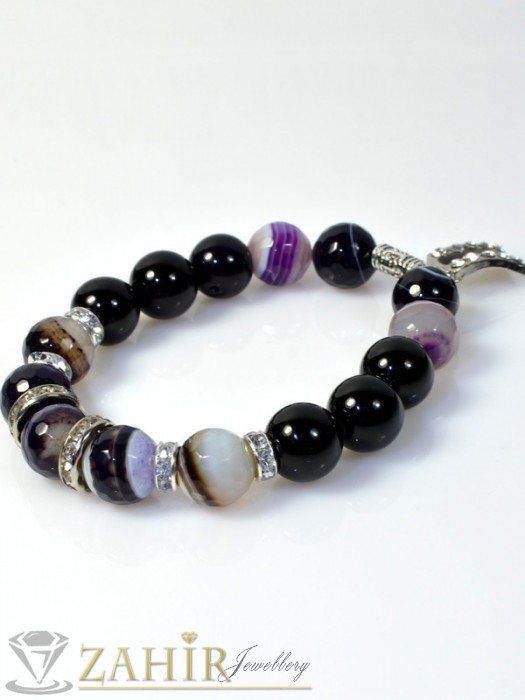 Гривна уникат, която се прави ръчно от естествени камъни ахат и метални елементи с кристали.