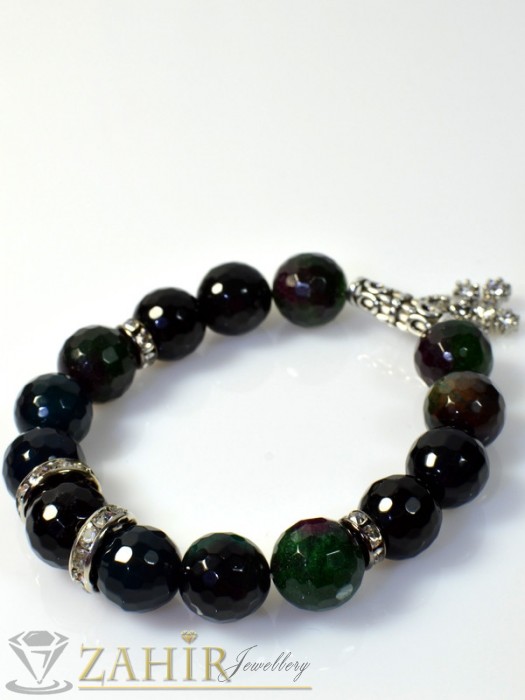 Бижутерия - Гривна естествен преливащо черен ахат 12мм - GA1007
