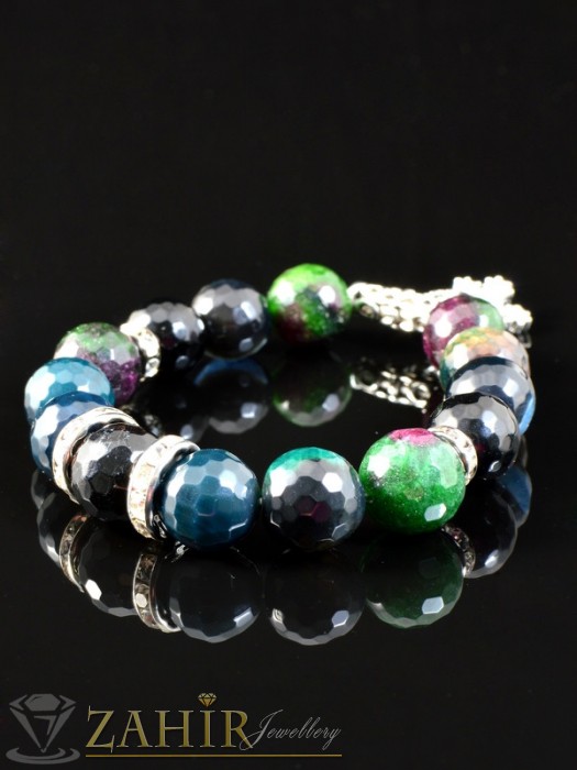 Гривна уникат, която се прави ръчно от естествени камъни ахат и метални елементи с кристали.