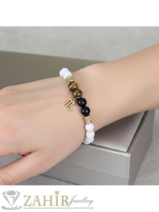 Гривната е изцяло ръчна изработка от естестени камъни и метални елементи . Всяка гривна е уникална и може да бъде намерена и закупена само онлайн от магазин Захир на намалена промо цена.