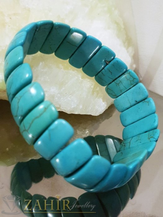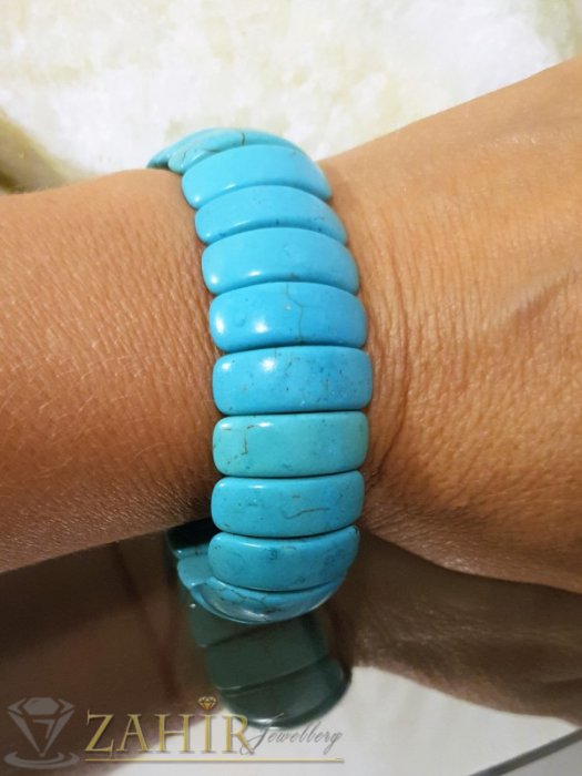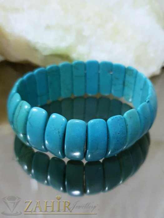 Синтетичен полиран тюркоаз 2,3 см на ластична гривна, стандартен размер