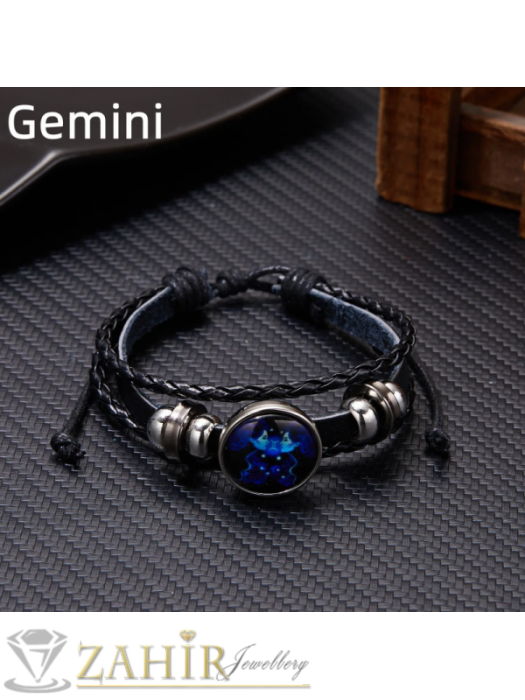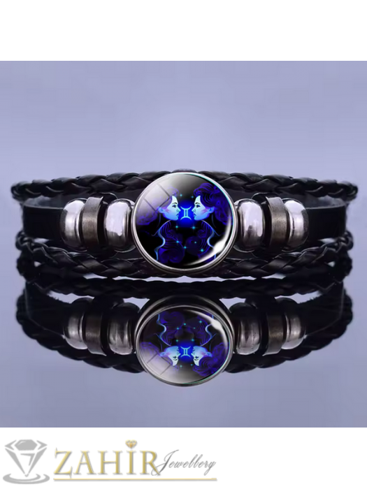 Открий смисъла и енергията на своя зодиакален знак с този красив талисман гривна, създадена да подчертае индивидуалността ти. Гривната е изработена от естествена черна кожа и висококачествени метални детайли, които придават модерен и устойчив завършек. В центъра ѝ блести овална плочка с диаметър 1,8 см, гравирана със зодиакален символ – изящен акцент, който съчетава естетика и духовна символика.