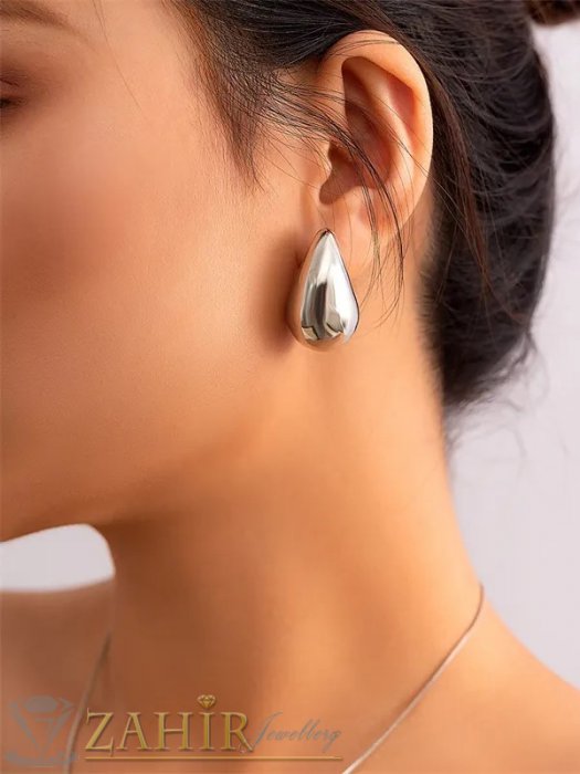 ДАМСКИ БИЖУТА - ХИТ големи сребристи обеци капки 3 на 1,5 см, закопчаване на винт,цинкова основа - O2967