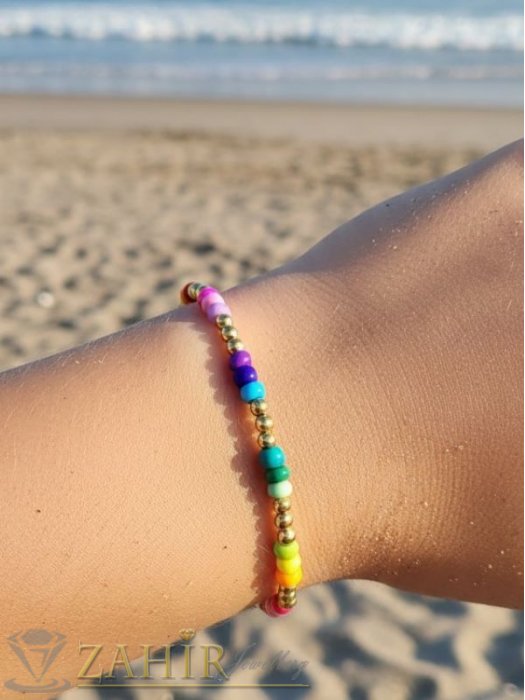 Цветна, стилна и заредена с лятно настроение – гривната „Златно настроение“ от Бижутерия Захир е създадена за тези, които обичат да бъдат различни. Комбинацията от златисти мъниста и ярки цветни акценти носи усещане за радост, свобода и непринуденост. Перфектният завършек към всеки бохо или летен аутфит.