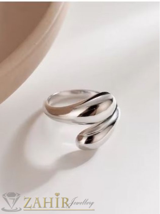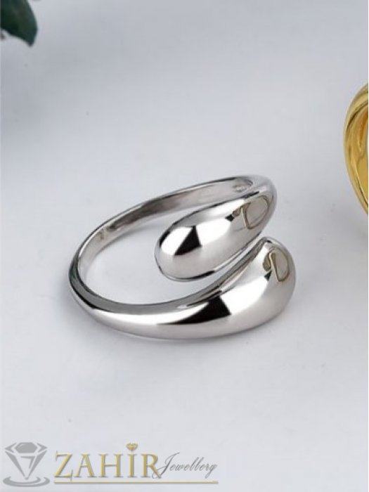 Дамски бижута - Изящен стоманен пръстен с елегантни капковидни форми, не променя цвета си - P1612