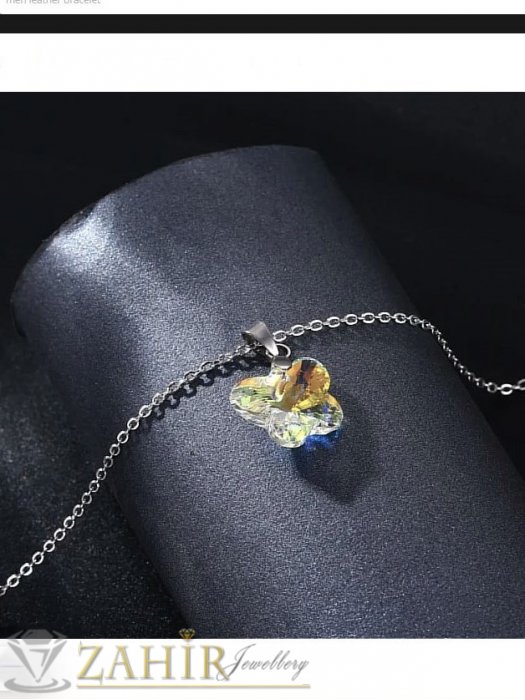 Дамски бижута - Изящна кристална висулка пеперуда 1,5 см със сменящи се цветове на класическа тънка стоманена верижка дълга 45 +5 см удължител - K2206