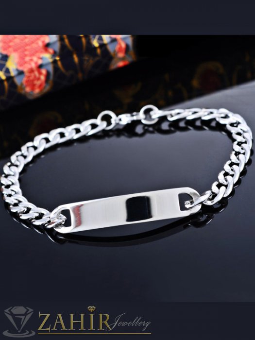 Класическа стоманена гривна с плочка 4 см в 3 различни дължини