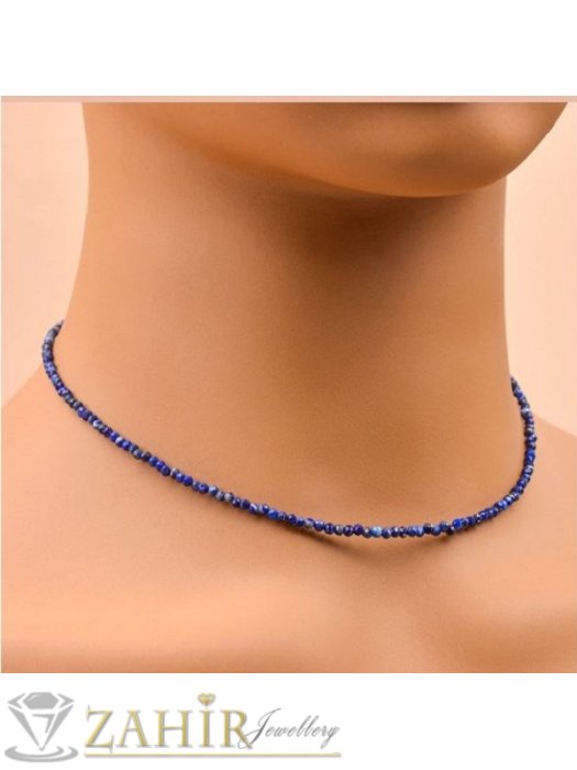 ДАМСКИ БИЖУТА - Нежно ръчно изработено колие от малки 3 мм естествени камъни фасетиран син содалит, стоманени накрайници - KA1052