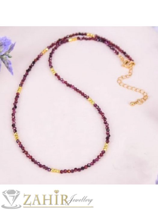 ДАМСКИ БИЖУТА - Ослепително ръчно изработено колие от малки 3 мм естествени камъни фасетиран гранат в цвят бургунди, стоманени мъниста и накрайници - KA1101
