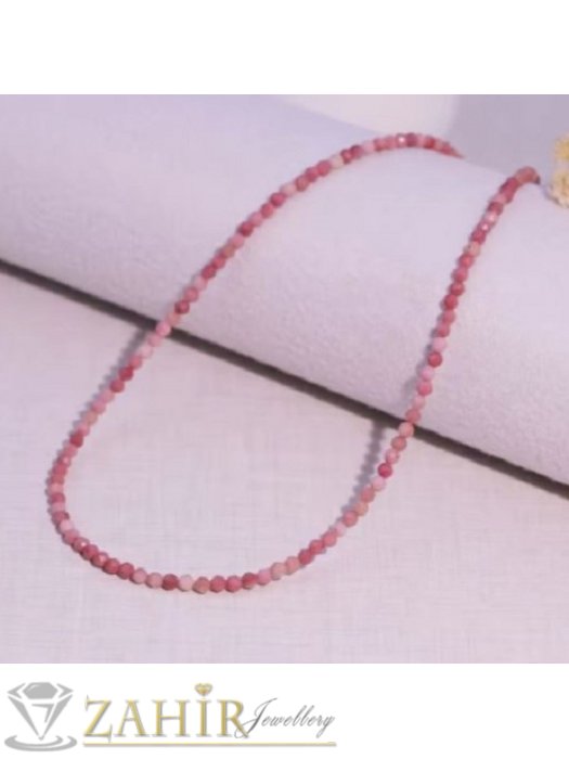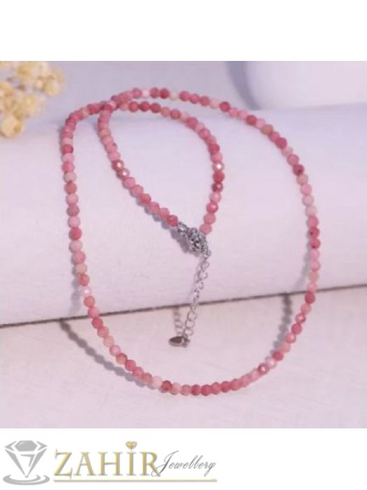 ДАМСКИ БИЖУТА - Романтично ръчно изработено колие от малки 3 мм естествени камъни фасетиран розов жадеит, стоманени накрайници - KA1065