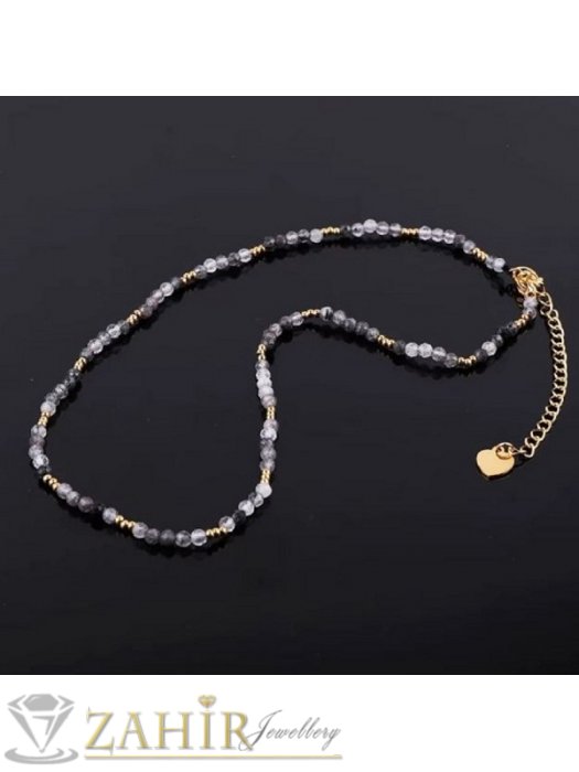 ДАМСКИ БИЖУТА - Уникално красиво ръчно изработено колие от малки 3 мм естествени камъни фасетиран черно-бял кварц, стоманени мъниста и накрайници - KA1114