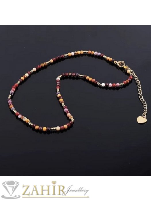ДАМСКИ БИЖУТА - Уникално красиво ръчно изработено колие от малки 3 мм естествени камъни фасетиран цветен яспит мукаит, стоманени мъниста и накрайници - KA1116