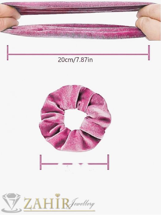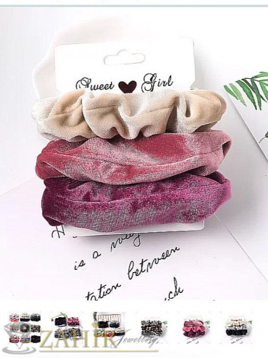 Аксесоари за коса - Комплект от 3 бр. малки велурени ластици за коса тип скрънчи с диаметър 8 см, в розовата гама , много меки - L1188