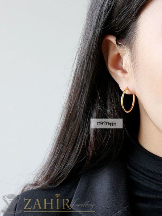Малки елегантни и удобни за носене класически халки от стомана със златно покритие,диаметър 2,2 см,стабилно закопчаване