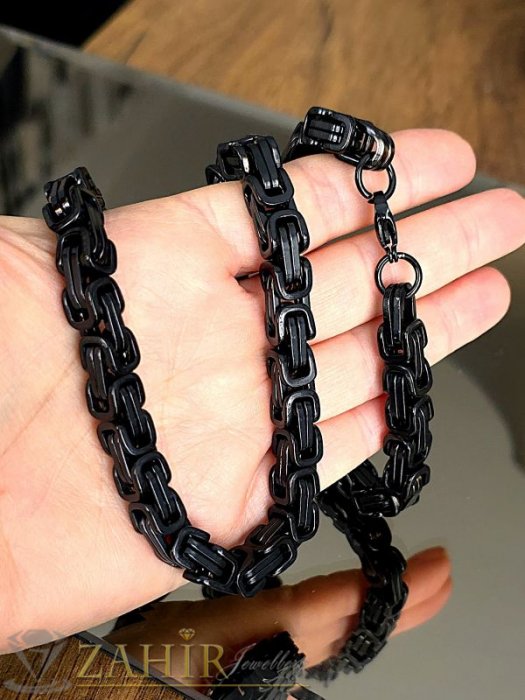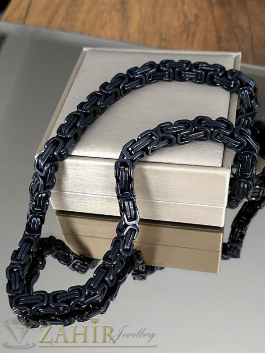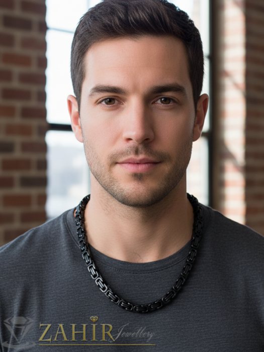 Мъжки бижута - Масивен черен ланец 60 см, с римска плетка, широк 0,9 см, хипоалергенна стомана с оксидирано покритие- ML1838