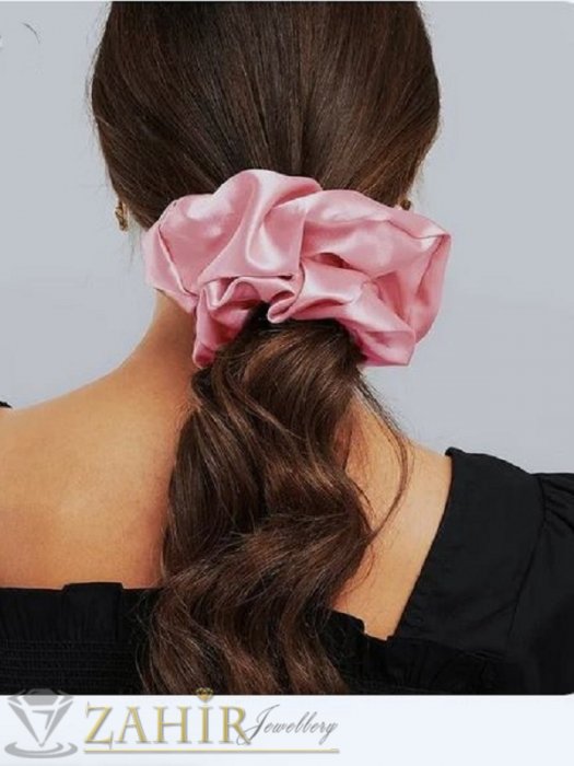 Аксесоари за коса - Мега голям ластик тип скрънчи 18 см , направен от копринен сатен в цвят бебешко розово - L1216