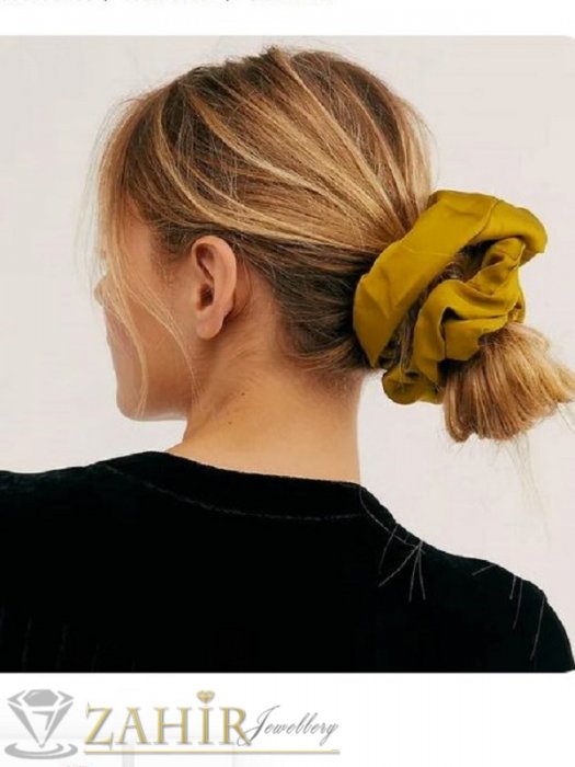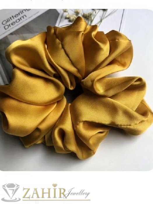 Аксесоари за коса - Мега голям ластик тип скрънчи 18 см , направен от копринен сатен в цвят горчица - L1215