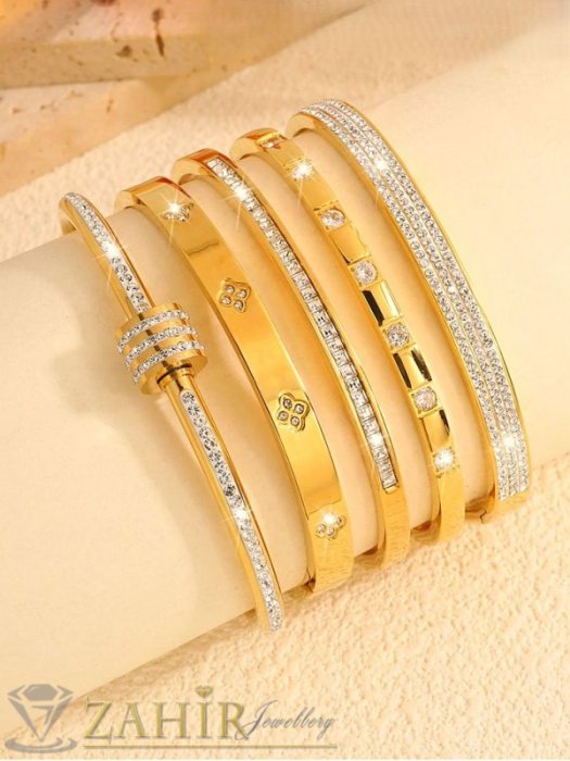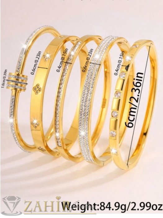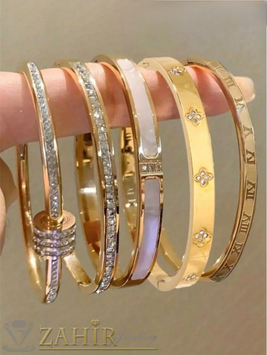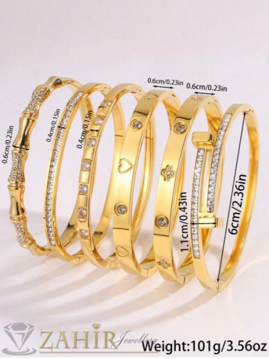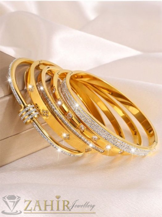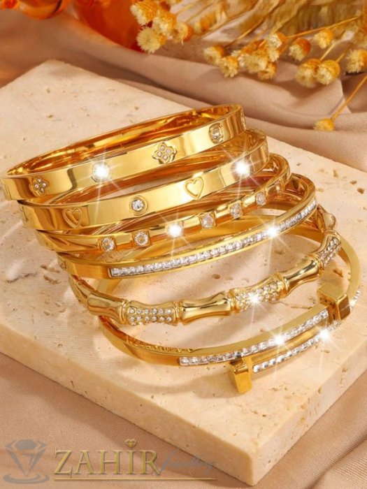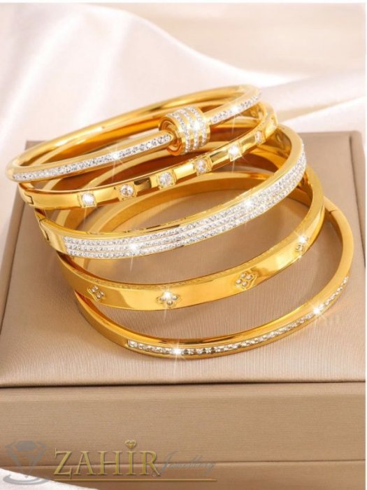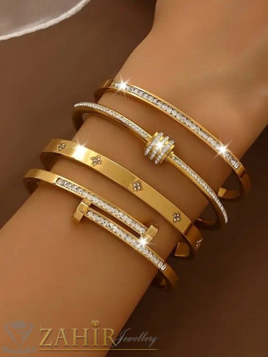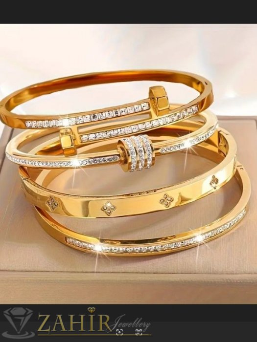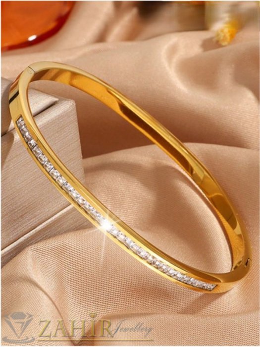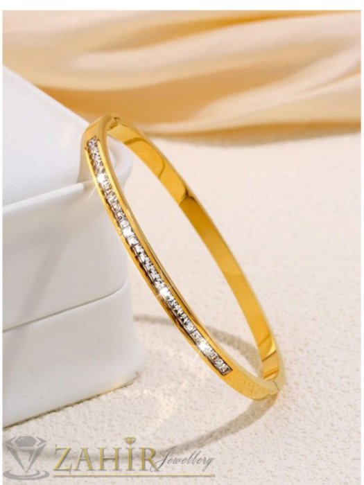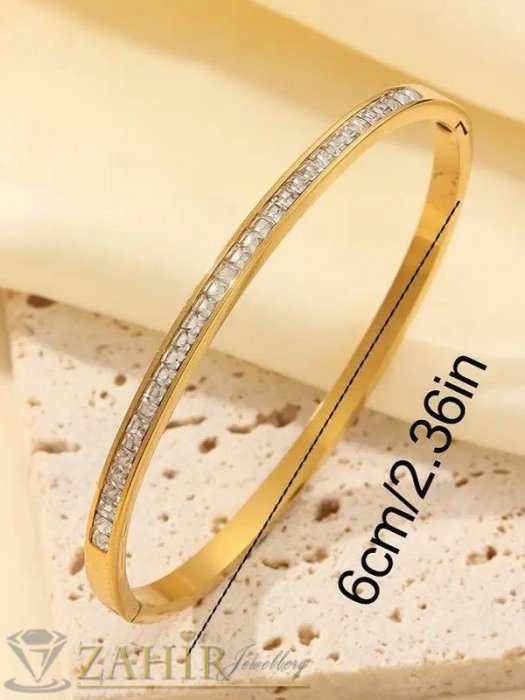 ДАМСКИ БИЖУТА - Много нежна кристална гривна изящна изработка тип обръч от хипоалергенна 316 L стомана, диаметър 6 см, широка 0,3 см, златно покритие - G2221