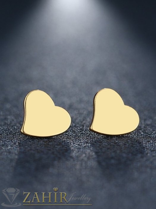 Много нежни малки обеци сърца 1,2 см от стомана със златно покритие, закопчаване на винт