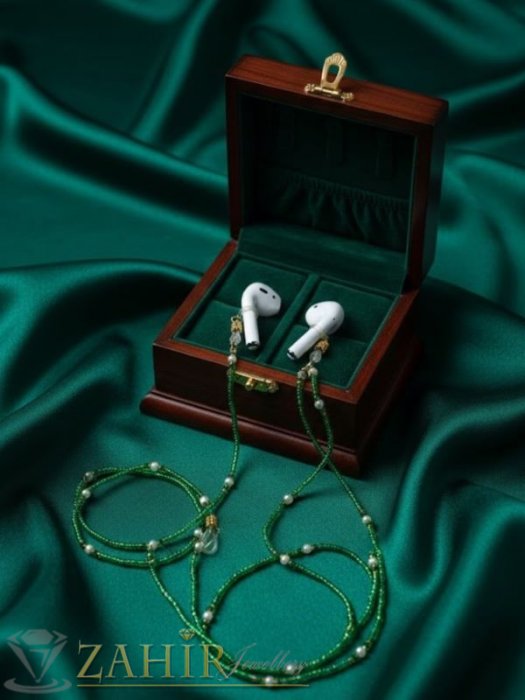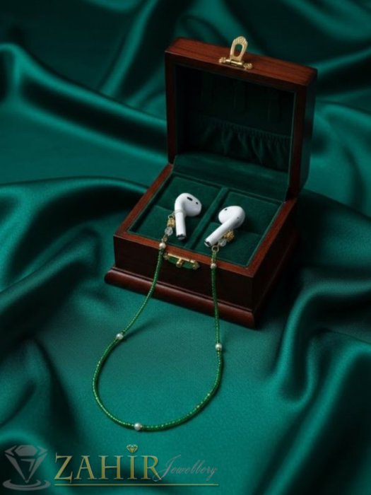 Придайте на аксесоарите си доза кралско излъчване! Тази изящна верижка в наситен горскозелен нюанс, преплетена с нежни перлени мъниста, е перфектната комбинация от класическа елегантност и модерна функционалност.