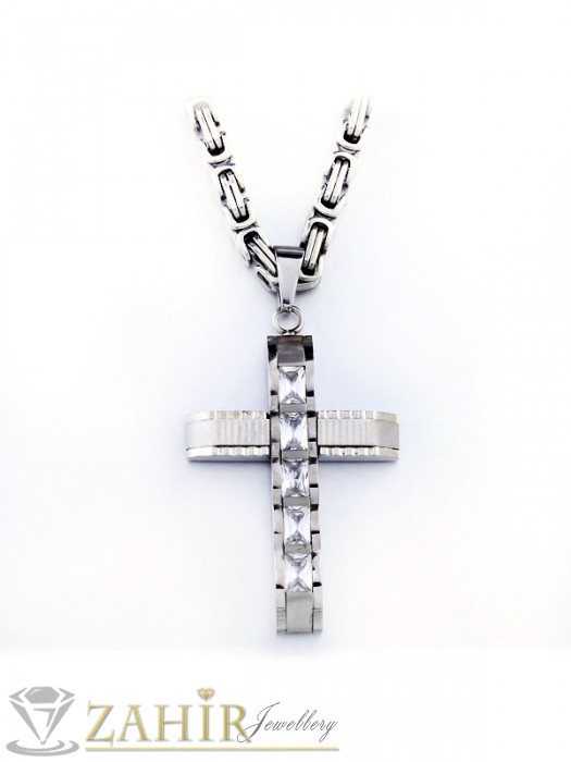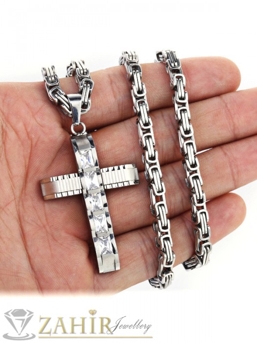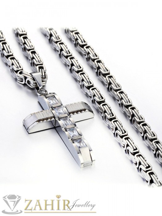 Мъжки бижута - Мъжки ланец неръждаема стомана 60 см, широк 0,5 см с висулка кръст от неръждаема стомана - 5 + 1см - ML1014