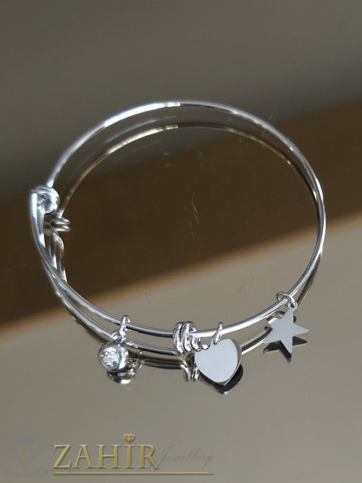 Всяка жена мечтае за бижу на своята ръка. Подарете си едно качествено бижу от неръждаема стомана и кристали на страхотна промоционална цена. Гривната е с удължител и може да се регулира по дължина.