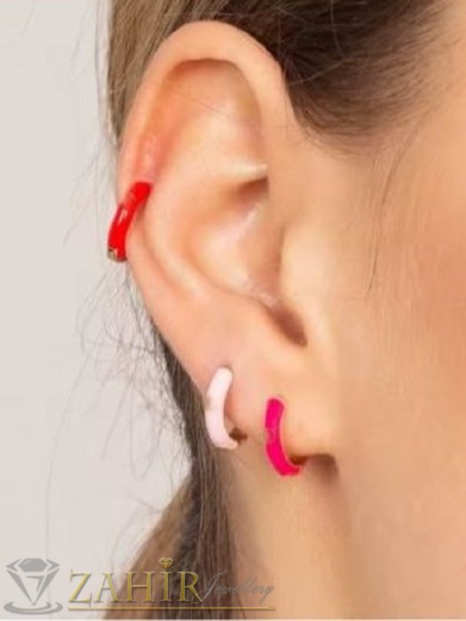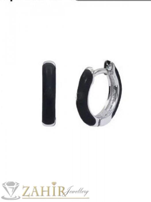 ДАМСКИ БИЖУТА - Нежни обеци халки от сребриста медицинска стомана с черен емайл размер 1,6 см, широки 0,3 см, английско закопчаване - O3088
