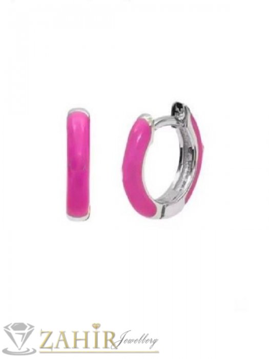 ДАМСКИ БИЖУТА - Нежни обеци халки от сребриста медицинска стомана с тъмнорозов емайл ( цвят фуксия) размер 1,6 см, широки 0,3 см английско закопчаване - O3087