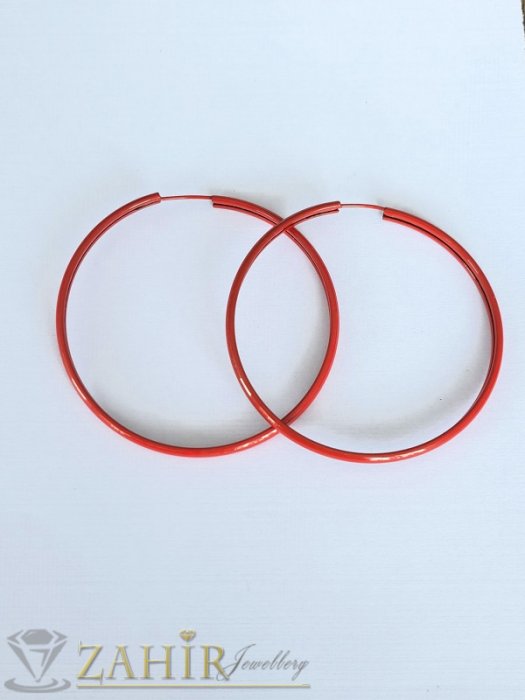 ЦВЕТНИ ОБЕЦИ - Олекотени акрилни халки в тъмно червен цвят , диаметър 6,5 см, английско закопчаване - C1091