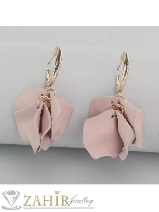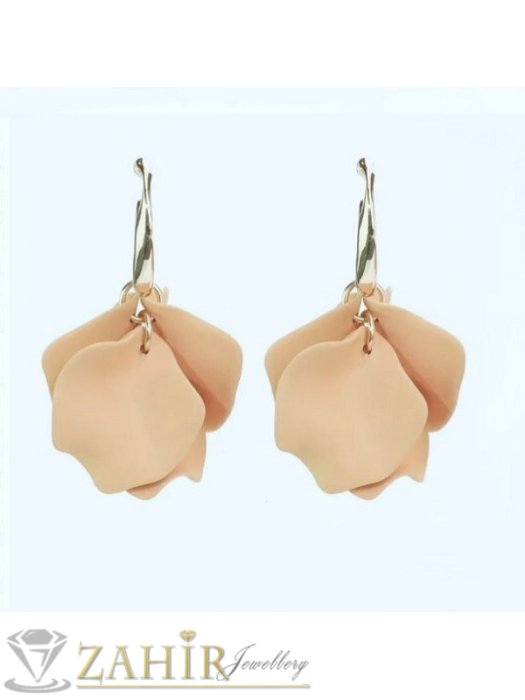 ДАМСКИ БИЖУТА - Олекотени акрилни листа с цвят бежова пудра на стоманени халки обеци с диаметър 2 см и широки 0,3 см, английско закопчаване, златно покритие-- C1226