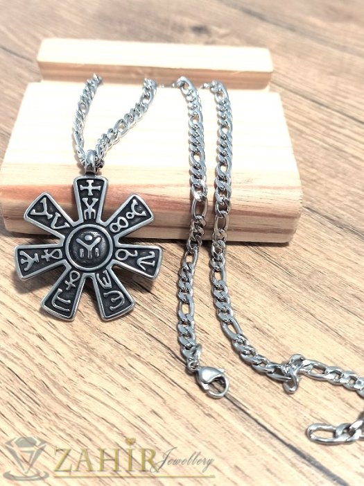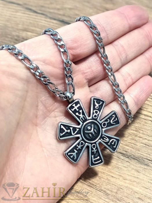 Ланците са направени от висококачествена медицинска стомана. Тя се отличава със своето качество, не предизвиква алергии и много трудно се износва. Може да се мокри без проблем. Позлатените елементи да се пазят от вода.
