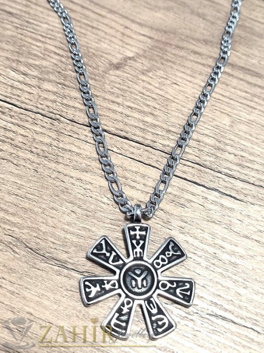 на ланеца е стомана.От носене не променя цвета си.