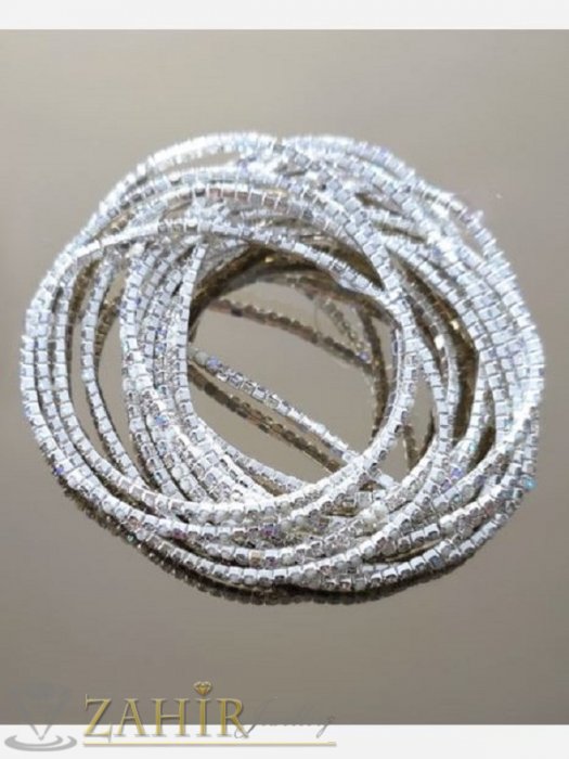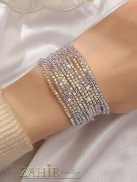 Дамски бижута - Пленителен сет от 12 ластични гривни с бели и прозрачни критали, размер 17-18 см - G2185