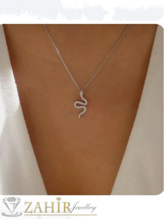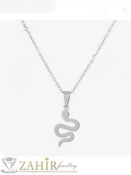 Дамски бижута - Полирана стоманена висулка змия с размери 3 на 1,2 см на класическа тънка стоманена верижка в 2 размера - K2204