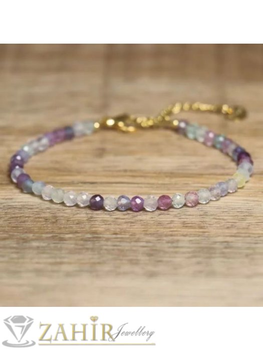 ДАМСКИ БИЖУТА - Прелестна ръчно изработена гривна за ръка или глезен от естествен цветен флуорит 3 мм фасета, стоманени елементи, закопчалка и удължител - GA3190