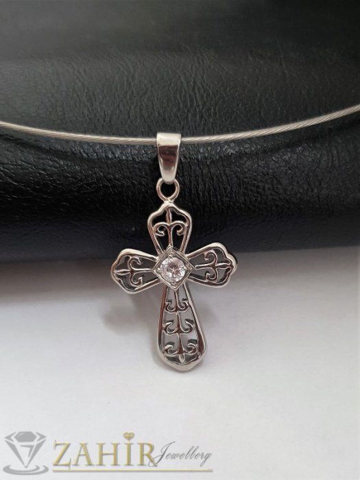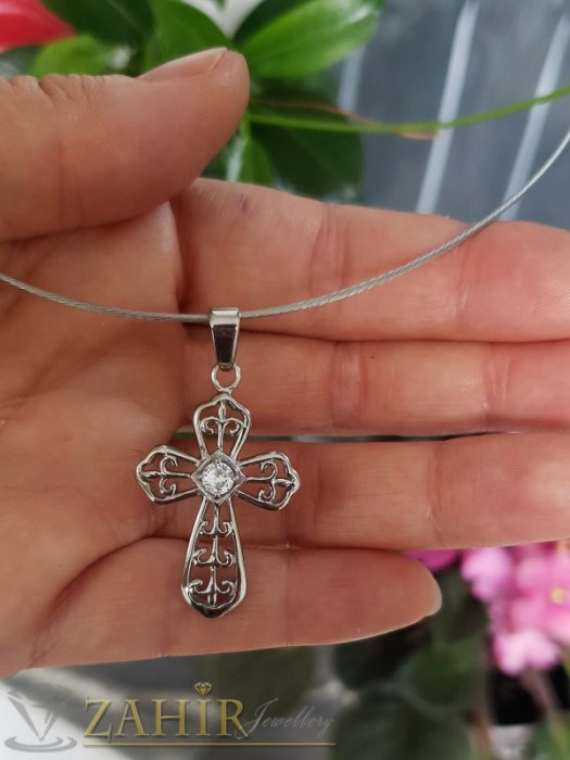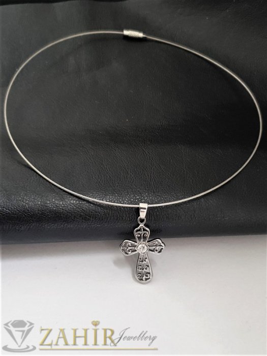 Пърокласен стоманен обръч- стандартен с красива висулка кръстче с кристал 2 см, стомана