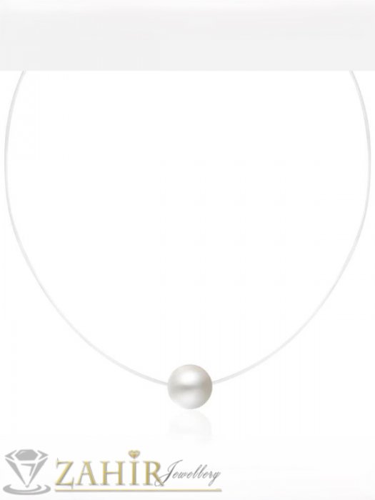 ДАМСКИ БИЖУТА - Романтично колие с естествена бяла речна перла 0,8 см на невидима корда, дълго от 37 до 43 см , стоманени закопчалка и удължител - K2262