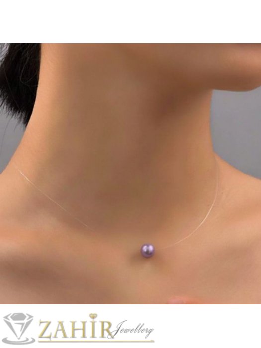 Романтично колие с перла на невидима корда,