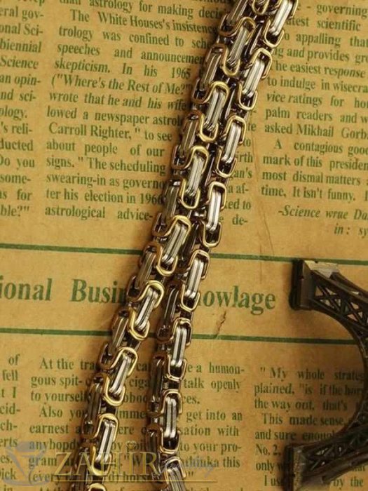 Ланците са направени от висококачествена медицинска стомана. Тя се отличава със своето качество, не предизвиква алергии и много трудно се износва. Може да се мокри без проблем. Позлатените елементи да се пазят от вода.