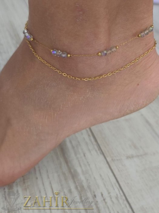 ✔ Двойни и тройни верижки – с деликатни висулки, топчета, сърца, звезди или геометрични форми Всяка гривна се адаптира удобно около глезена, като подчертава женствеността и придава изискано, но свободно излъчване.